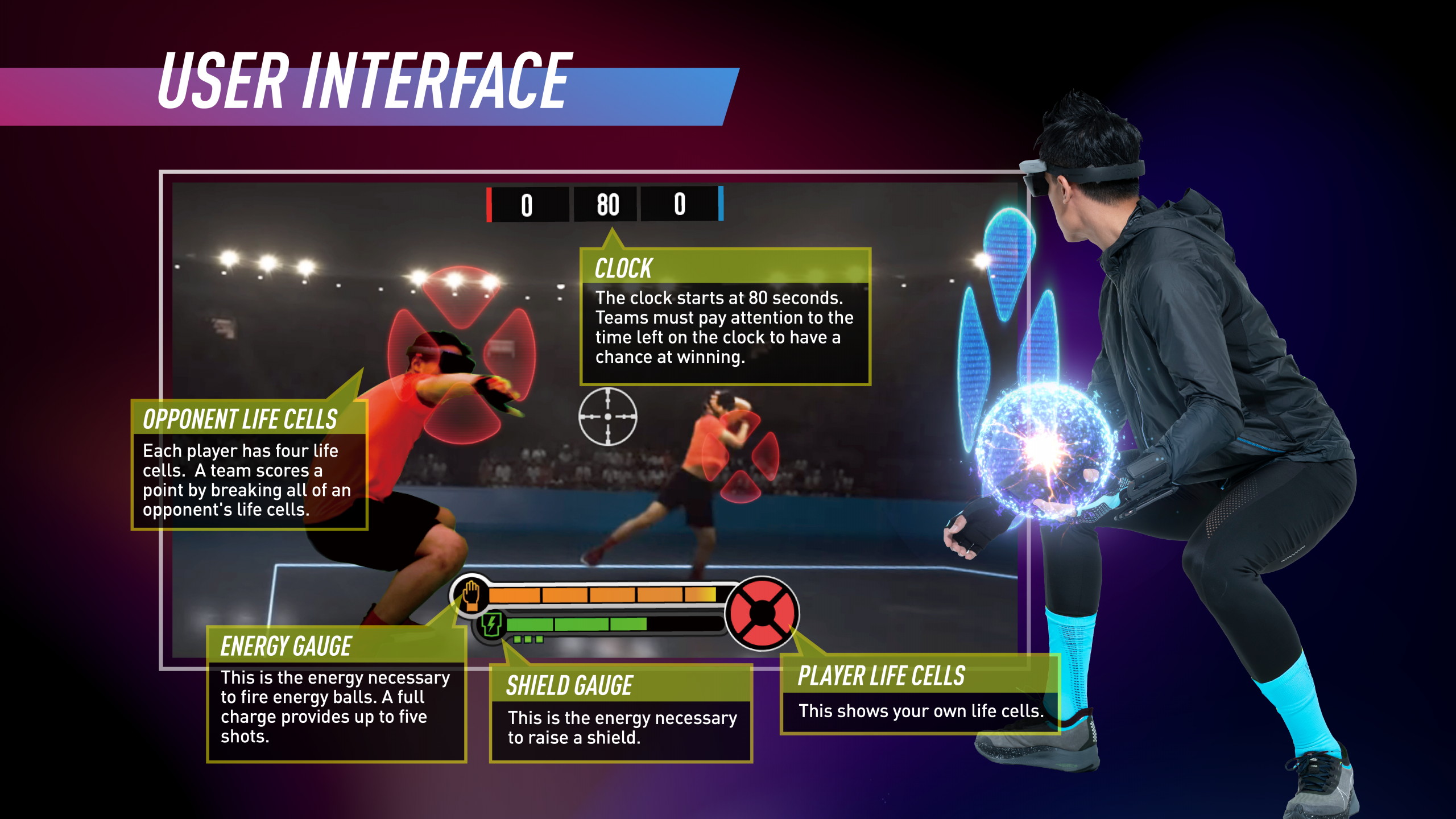 Teams of 3 players go head-to-head in 80 second games – usually in a best of 3 format.